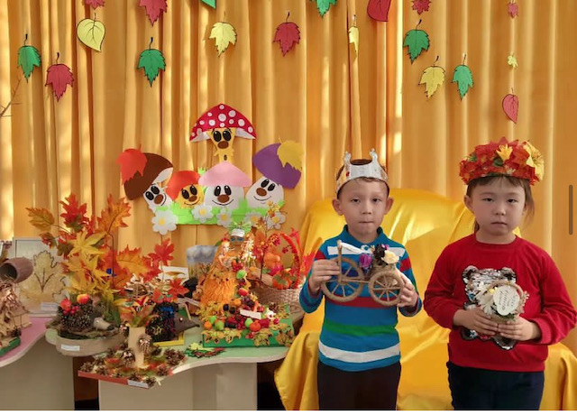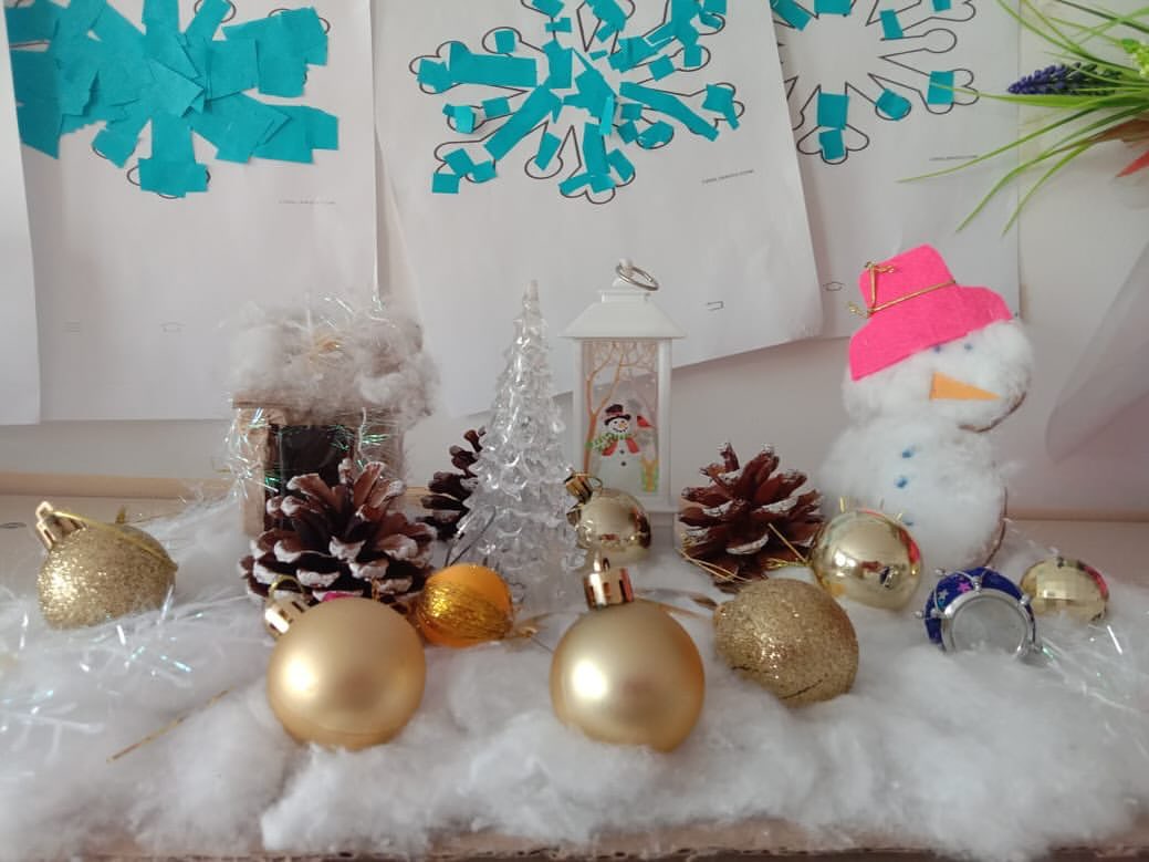 “Күншуақ” ортаңғы тобының Жаңа жылға ұйымдастырылған көрмесіне жасаған бұйымдары